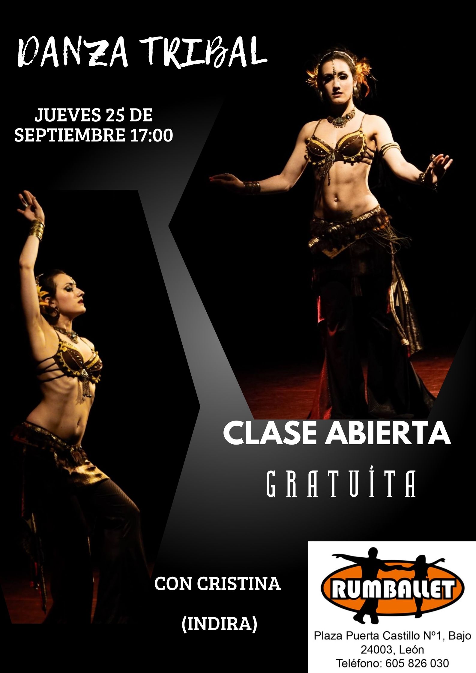 El próximo Jueves, 25 de Septiembre de 2025, te invitamos a una clase abierta de Danza Tribal con Cristina (Indira). No te la pierdas y ven a probar un estilo único!